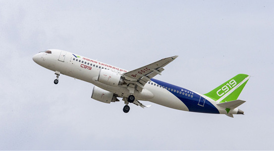 2018年6月22日,C919大型客機(jī)同時(shí)在上海和西安兩地開展試飛。C919大型客機(jī)是我國按照國際民航規(guī)章自行研制、具有自主知識產(chǎn)權(quán)的大型噴氣式民用飛機(jī),座級158-168座,航程4075-5555公..