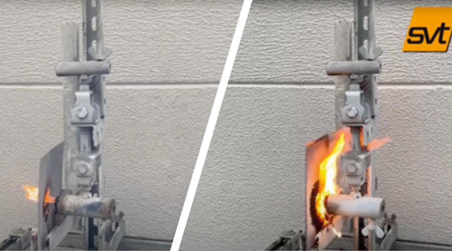 大連義邦SVT輕薄型膨脹防火涂料,為應對高密度動力電池熱失控防護而專項研發(fā)。它是一種特制的防火涂層,涂敷于動力電池包的內(nèi)壁或殼體上,用于電池包內(nèi)部以及外部的火燒保護,在1200℃度明火條件下,輕薄的涂層會瞬間膨脹超過自身厚度25倍(250mm)以上,經(jīng)測試耐溫可滿足30分鐘,背板溫度持續(xù)保持在150℃度以內(nèi),且膨脹薄膜無大塊粉末脫落現(xiàn)象,滿足現(xiàn)代化高密度動力電池熱管理要求。