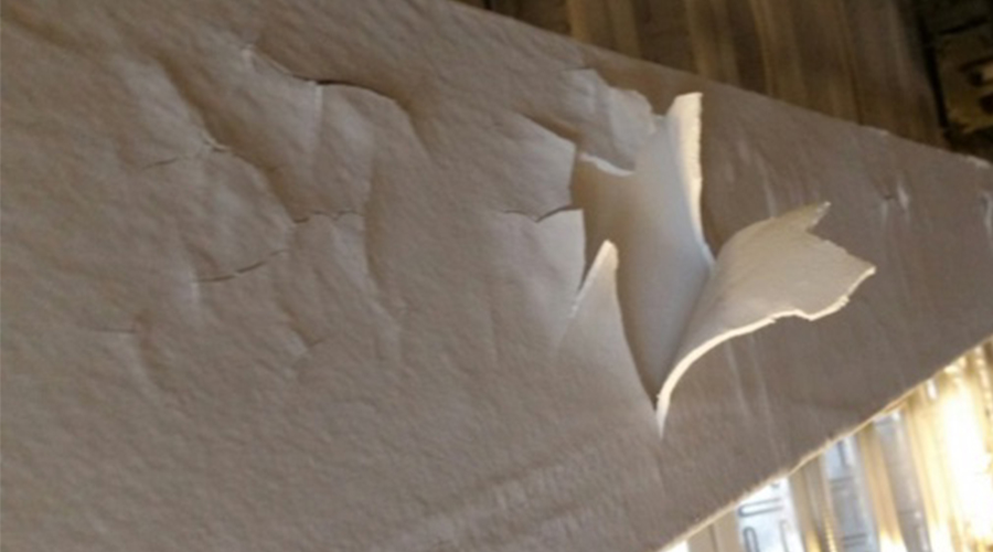 這個(gè)防火涂料的分層現(xiàn)象表明,低附著力防火涂層會(huì)導(dǎo)致粘合失效,從圖片可以看到它們已經(jīng)開(kāi)裂